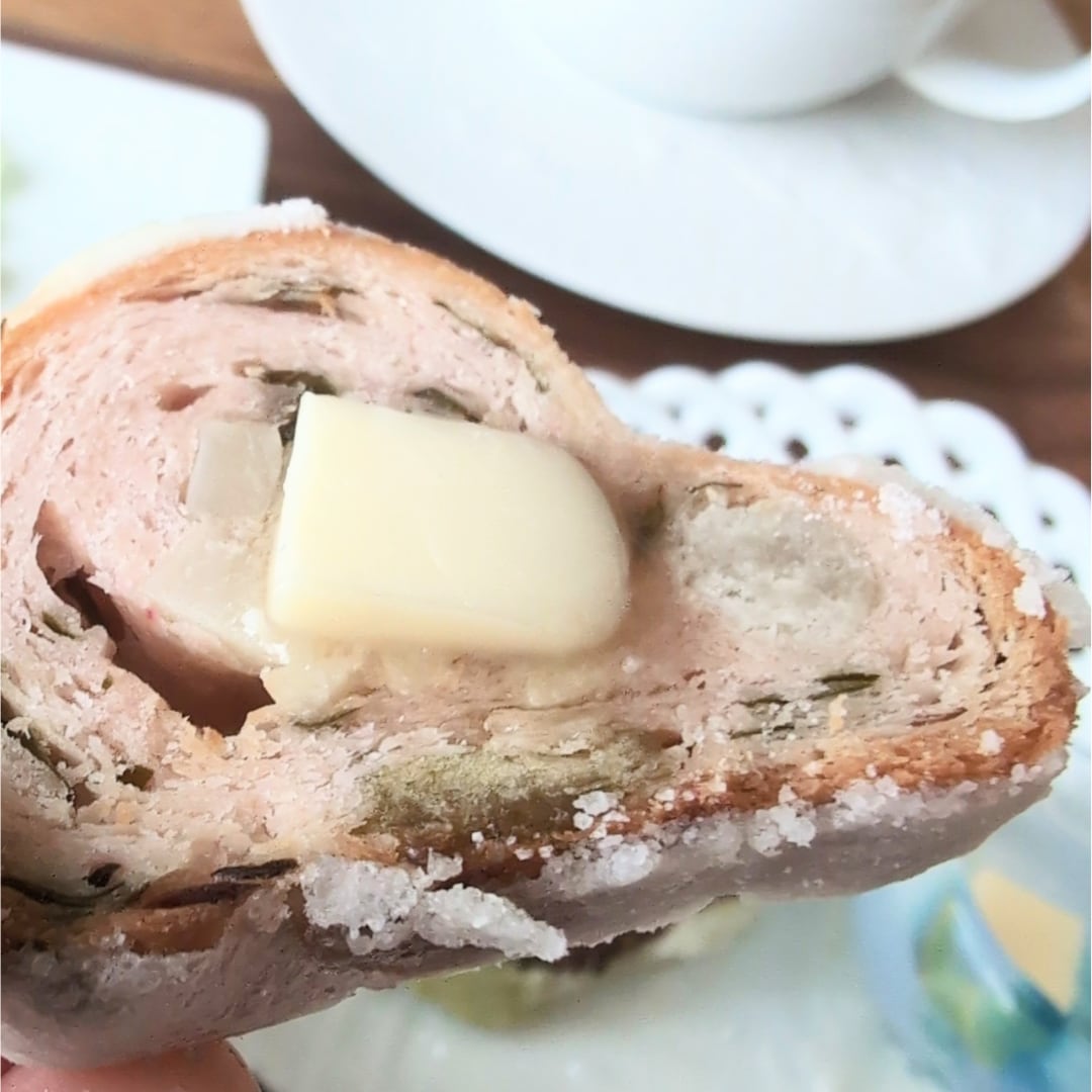 原材料:小麦粉(国内製造)、無塩バター、甘納豆(砂糖、還元水飴、青えんどう、手亡豆、ひよこ豆、金時豆)、アーモンド、桜花の塩漬け(八重桜(国産)、食塩、梅酢)、ローマジパン(アーモンド、砂糖)、洋酒(アマレット)、牛乳、スキムミルク、桜葉の塩漬(大島桜葉、食塩)、パウダーシュガー(砂糖(国内製造)、コーンスターチ)、グラニュー糖、桜パウダー(デキストリン、桜ペースト、寒天、砂糖)、インスタントドライイースト、塩/クエン酸、焼きミョウバン、安定剤(加工澱粉)、着色料(コチニール)、乳化剤(大豆由来)、香料(一部に乳成分・小麦・大豆・アーモンドを含む)