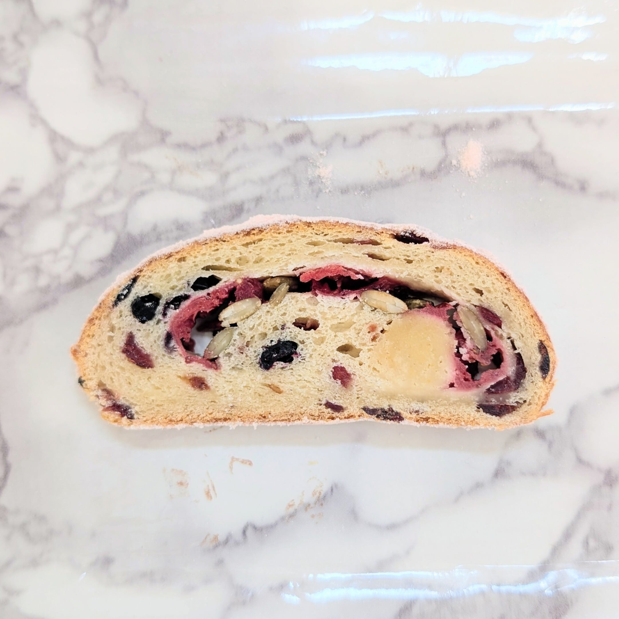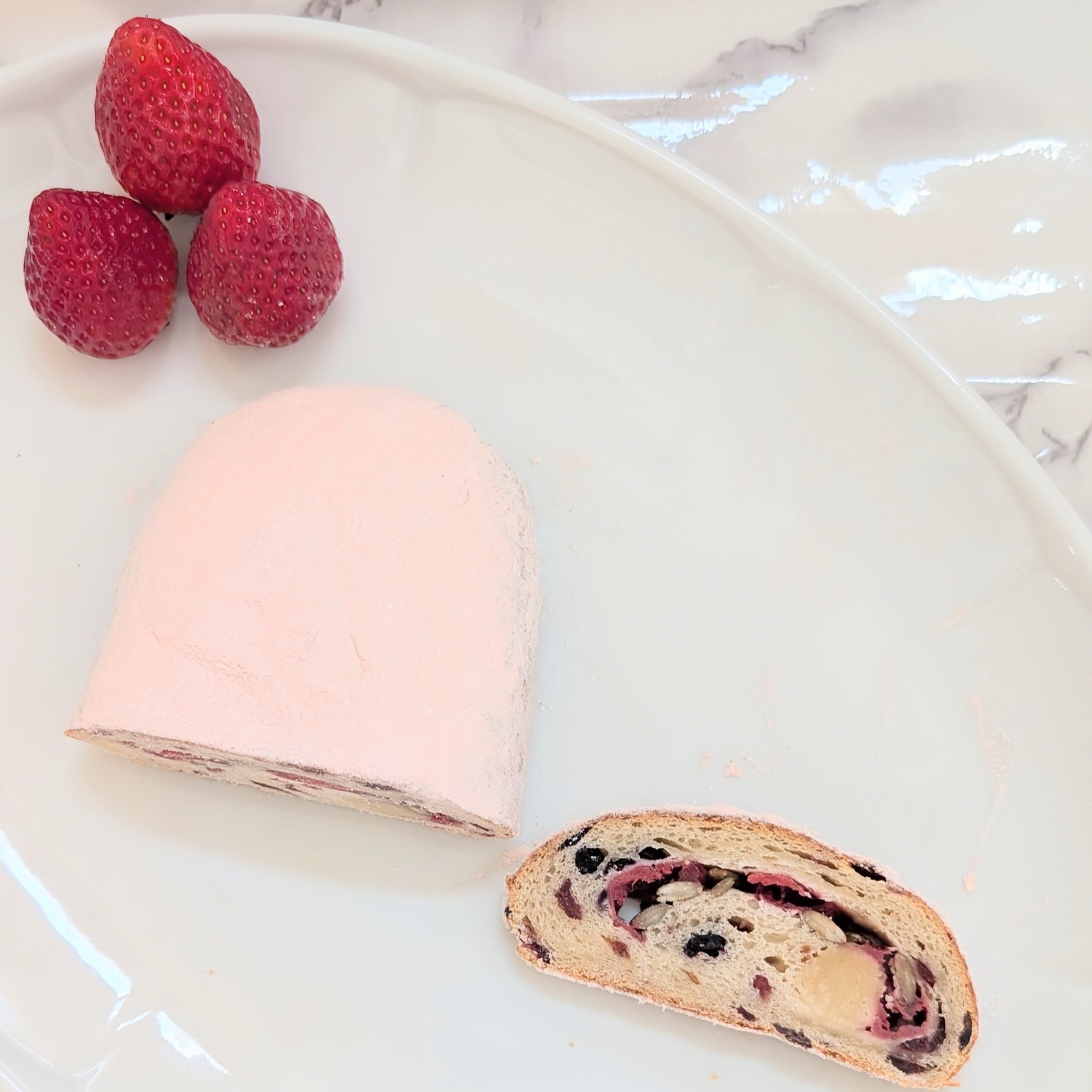 主な原材料: 横浜産いちご(自家製セミドライ)、4種ベリー、バニラペースト、アニス、洋酒、小麦粉、バター、カボチャの種、塩、牛乳、ローマジパン、インスタントドライイースト(一部に小麦・乳成分・アーモンドを含む)