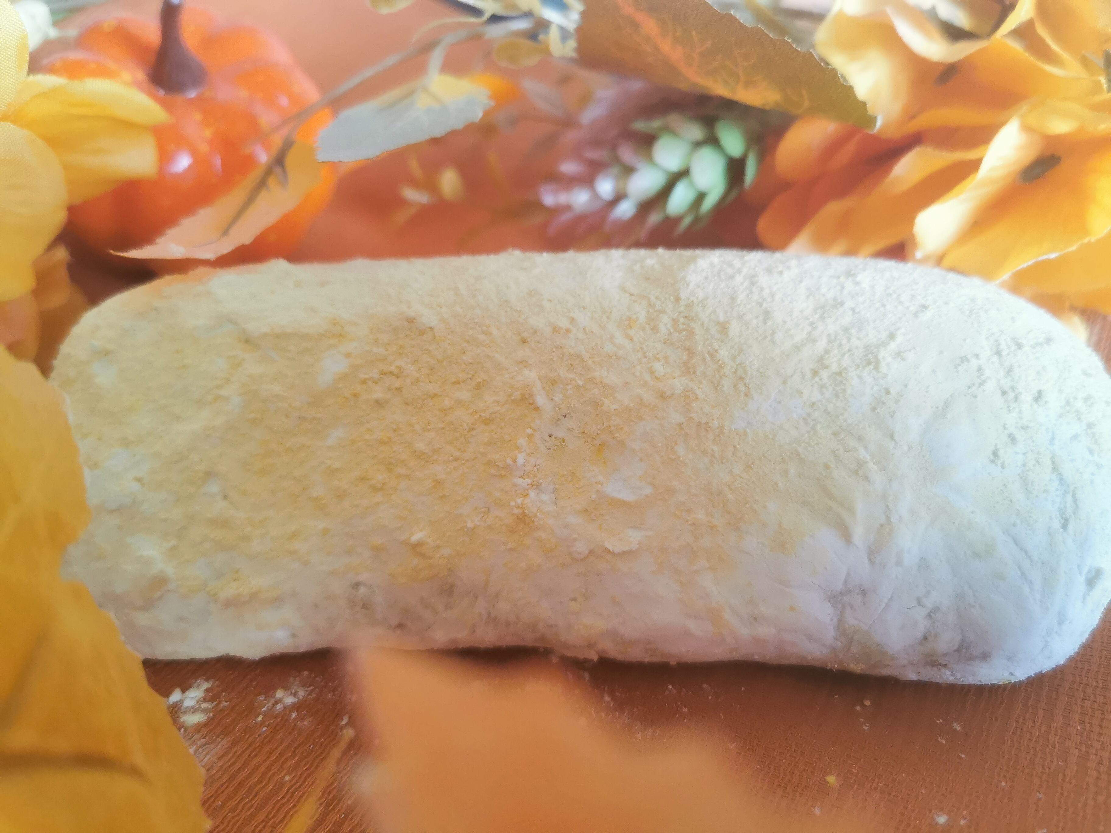 紫芋とパンプキンの華やかさが特徴で、カラフルな3色レーズンや皮無しアーモンドホール、縦割りアーモンドなどの贅沢な具材もたっぷり詰まっています。さらに、ブランデーの風味も加わり、一口食べるとハロウィン気分が高まります!